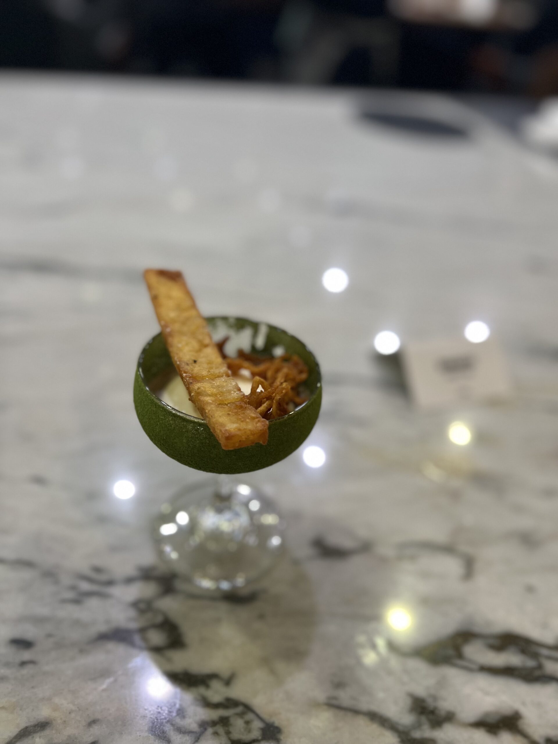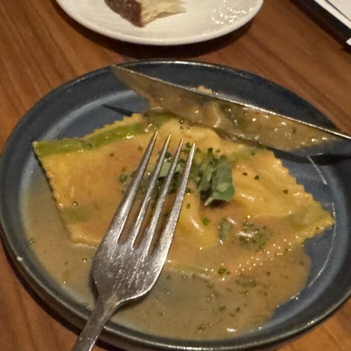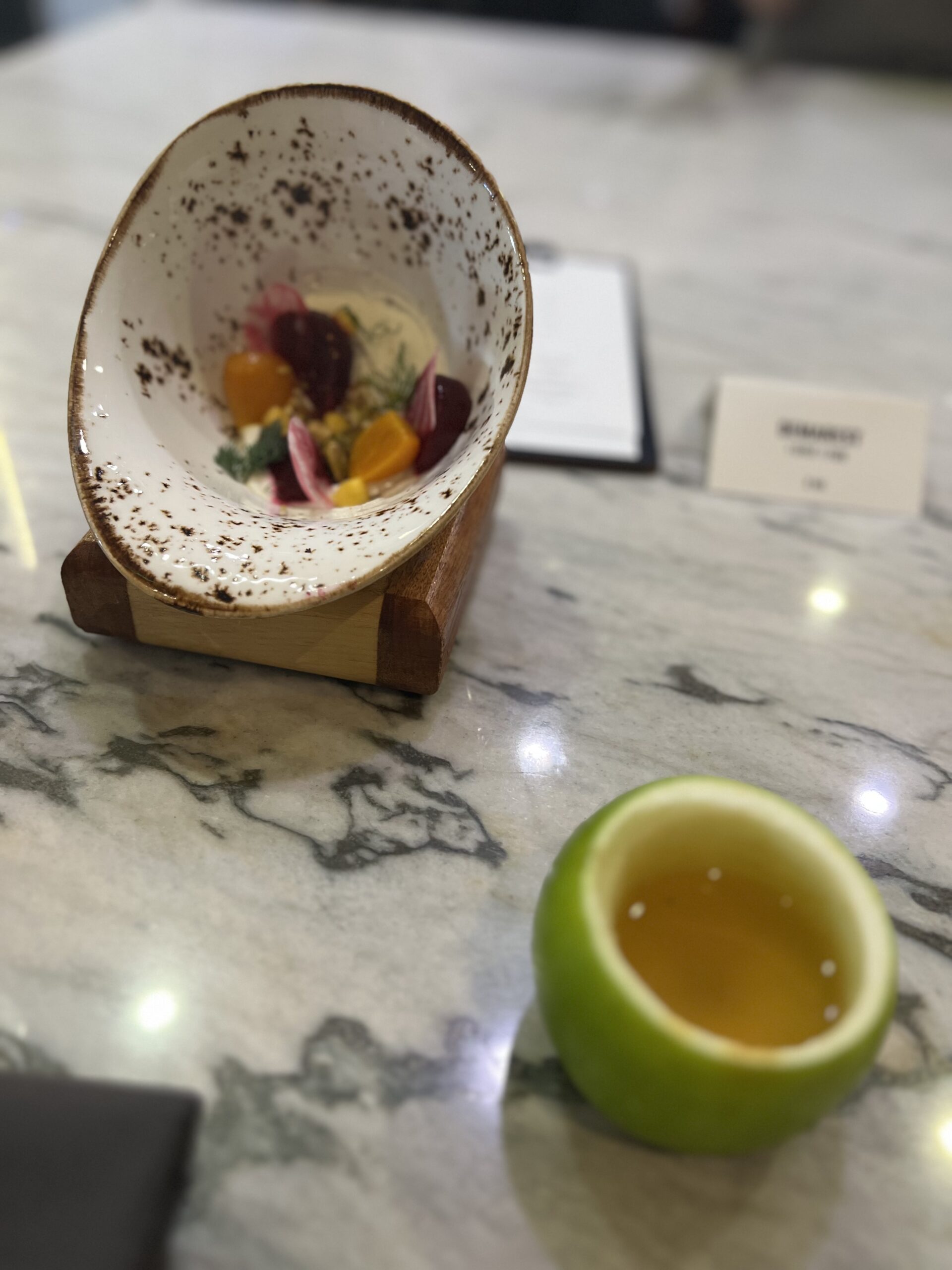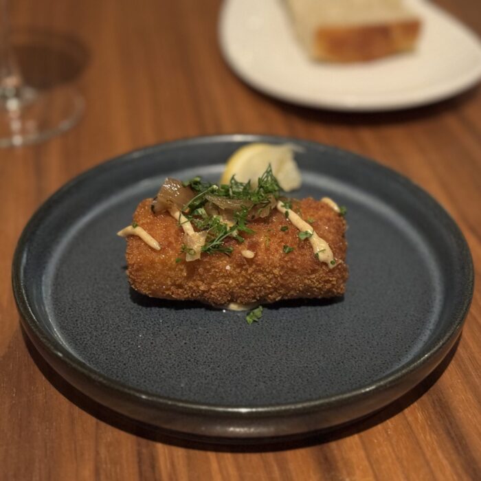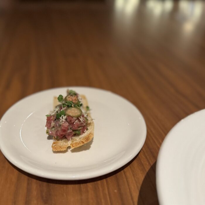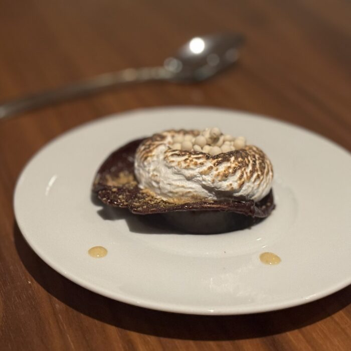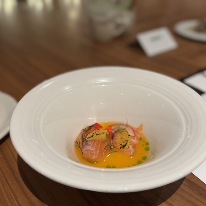 I’ve eaten at Travail twice since moving to the Twin Cities in 2022, and while both meals were playful and fun, they were very different experiences. I suspect that not only does the menu change often at this tasting-menu venue, but also the whole concept of the meal! Between that and the attitude of the staff when I’ve visited, I imagine a lively group of them sitting down together, eating of course (you always eat during restaurant planning sessions, in my experience), devising a whole new theatrical concept for the meal in the coming term, then the designing the menu around that idea or theme. This image I’ve created of the inner workings of Travail as this silly, happy place where they’re really just playing… it almost makes me want to go back to kitchen work (but then I get the almost PTSD reaction that always comes with that thought, and I move on).