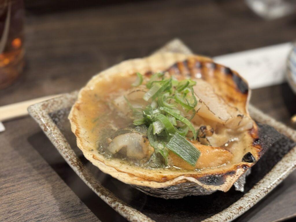 #5: Chicken Skin Yakitori & Grilled Scallop in Omoide Yokocho