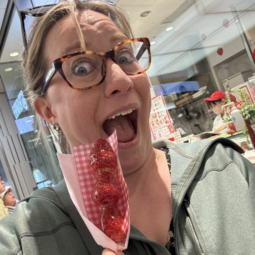 Produce in Japan is expensive, but worth it. I don’t know the factual reasons behind this, but in my mind, they have limited space (being a small, mountainous, island country) and so only grow the very best things, putting all their efforts into quality instead of quantity. Maybe that’s true, maybe not, but either way every fruit and vegetable I ate in Japan tasted like the quintessential essence of that item, distilled several times over. The strawberries… oh man were they the best I’ve ever eaten. And they were priced accordingly, with one small portion of the best variety costing like $50! We didn’t try those, but we tried several others, both from markets and grocery stores, along with a myriad of different pastries and confections focused on the seasonal fruit. Every single time, I was blown away. They were the strawberriest strawberries that could possibly exist!